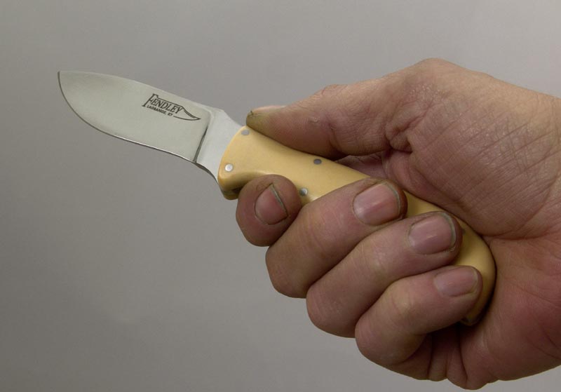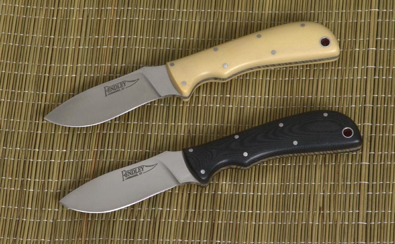 Shown below with ivory paper Micarta handle and satin finished 440C